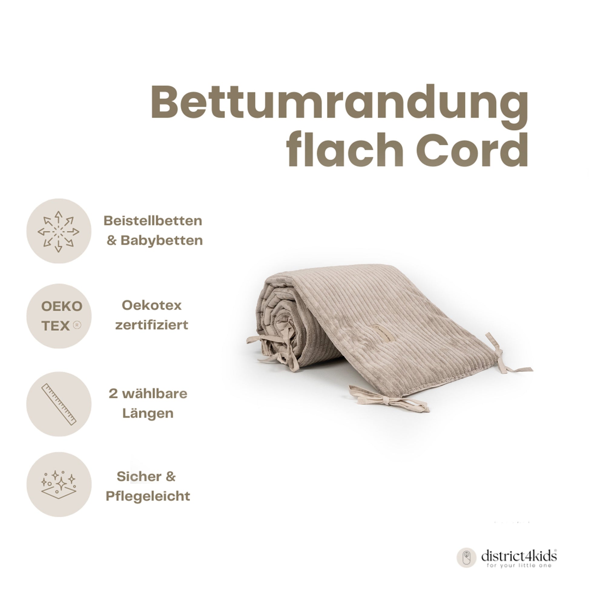 Die wendbare Bettumrandung von District for Kids vereint Schutz, Komfort und modernes Design in einem Produkt. Mit den zwei stilvollen Stoffseiten aus Baumwolle und Cord passt sie sich jedem Babyzimmer an und sorgt für ein kuscheliges, sicheres Schlafumfeld. Handgefertigt, langlebig und zertifiziert – die perfekte Wahl für Eltern, die Wert auf Qualität legen.