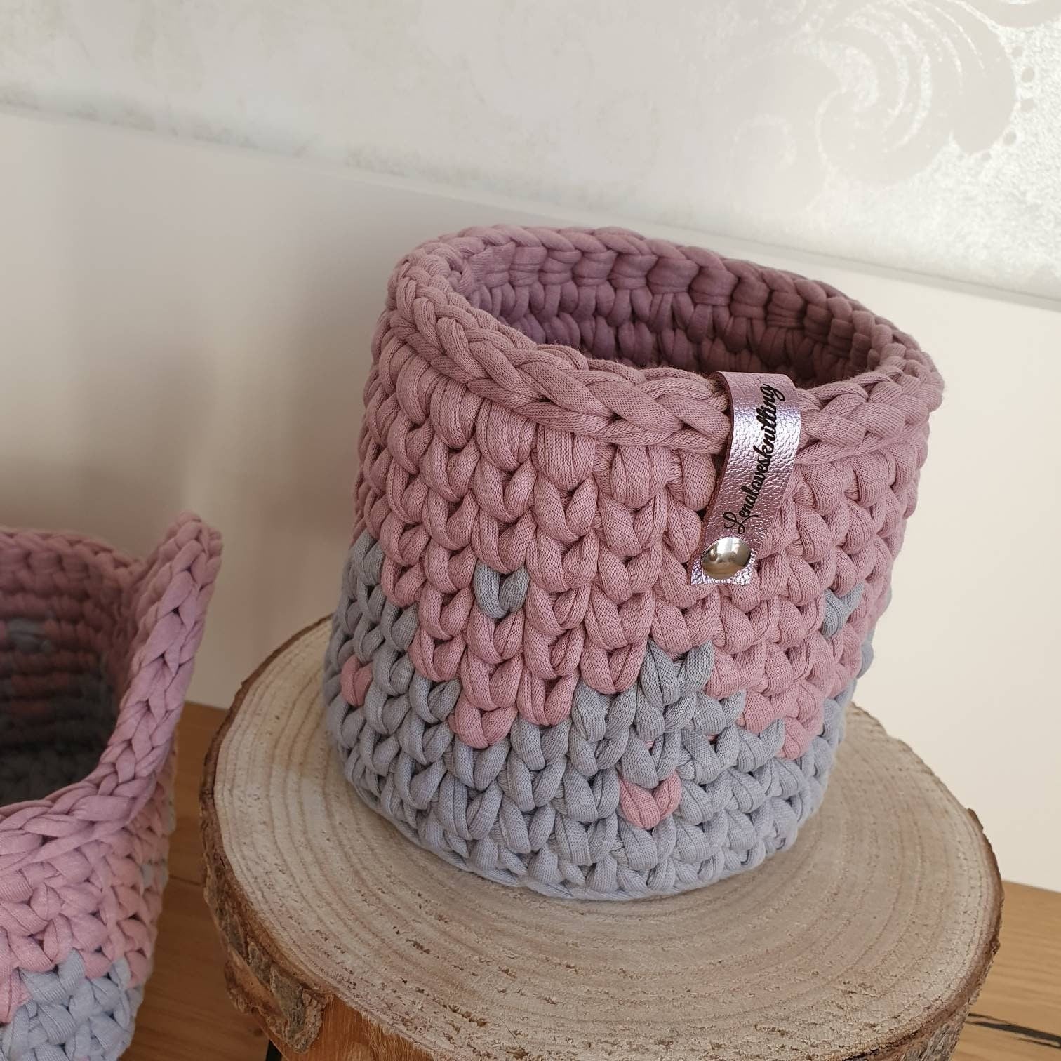 Aus dem Textilgarn gehäkeltes Körbchen