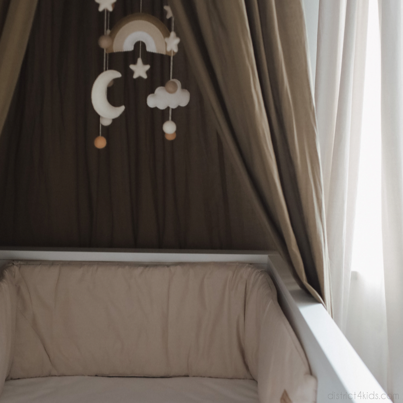 Maximaler Schutz & Sicherheit – mit stabilen Bändern fest am Babybett befestigt, damit dein Baby sich nicht stößt oder im Gitter verfängt.