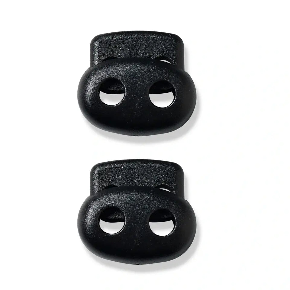 Los tapones de cordón de plástico de 2 orificios son adecuados para ajustar y asegurar la longitud de los cordones en chaquetas, pantalones o bolsas de gimnasio directamente en la apertura del cordón. Al hacerlo, aseguran que el cordón se deslice, mejoran visualmente la ropa y las bolsas y sirven como un cierre confiable.