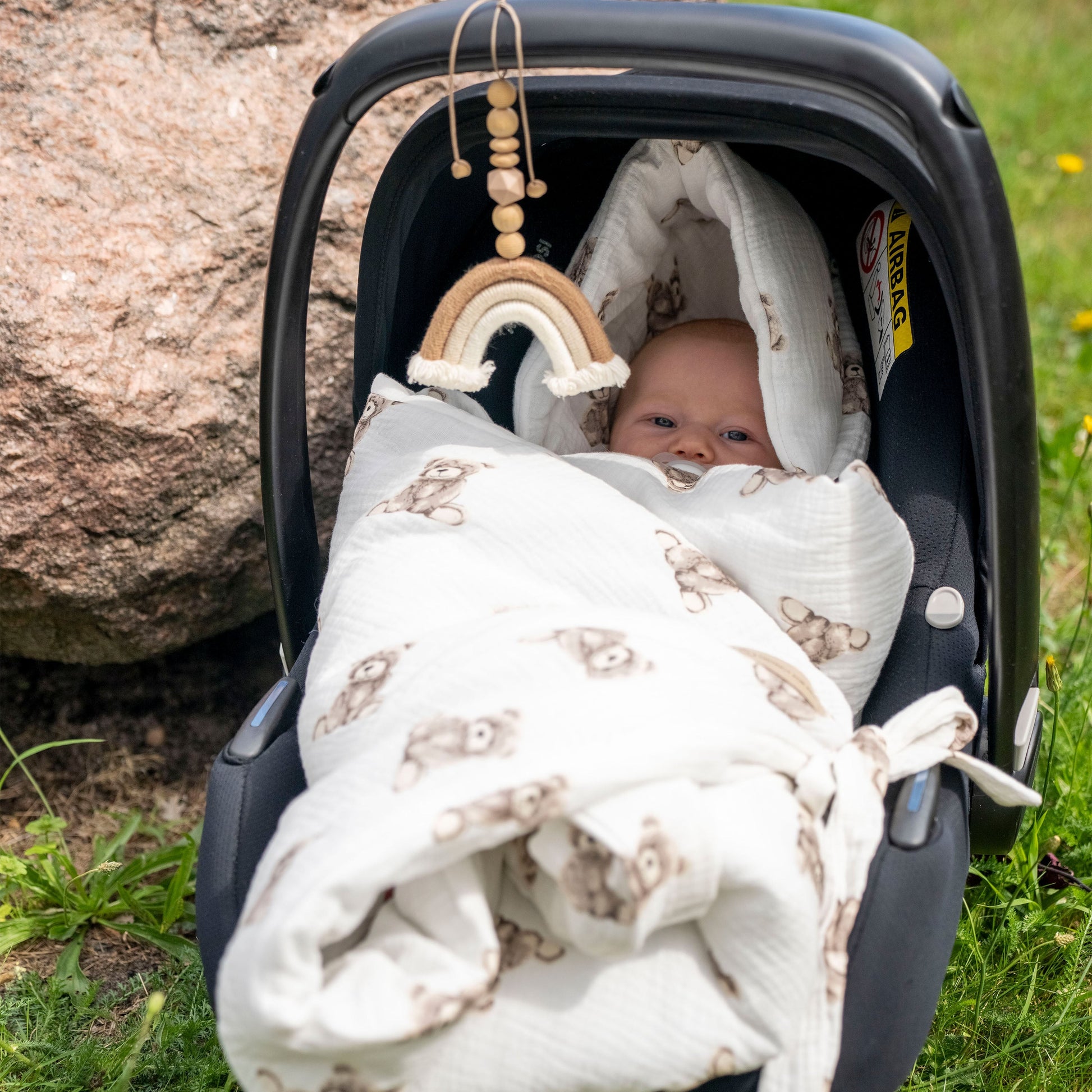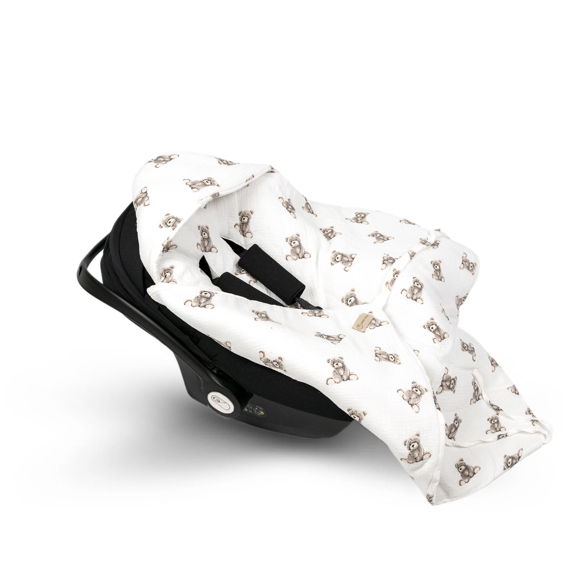 Einschlagdecke Musselin Teddybär – Perfekt für Autoschale Ganzjährig