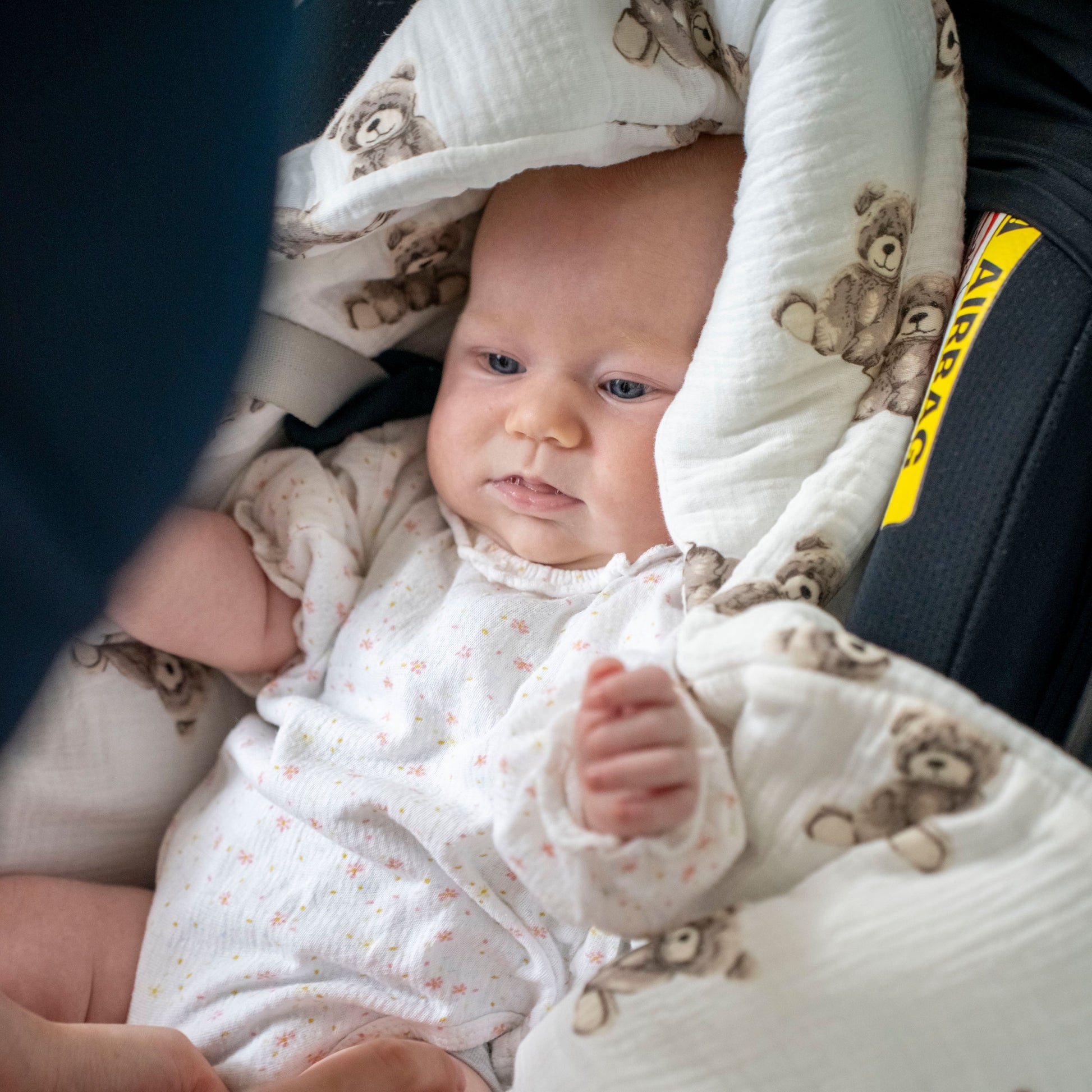 Sicherheit geht vor! Mit unseren Einschlagdecken aus Musselin ist dein Baby nicht nur kuschelig eingepackt, sondern auch sicher angeschnallt. Babys sollten in der Autoschale niemals mit Jacke oder Overall gesichert werden – das erhöht das Risiko, bei einer starken Bremsung aus den Gurten zu rutschen. Unsere Einschlagdecke löst dieses Problem: Dein Baby wird direkt im Gurtsystem befestigt und gleichzeitig angenehm eingehüllt – wahlweise leicht & luftig oder wärmend & kuschelig.