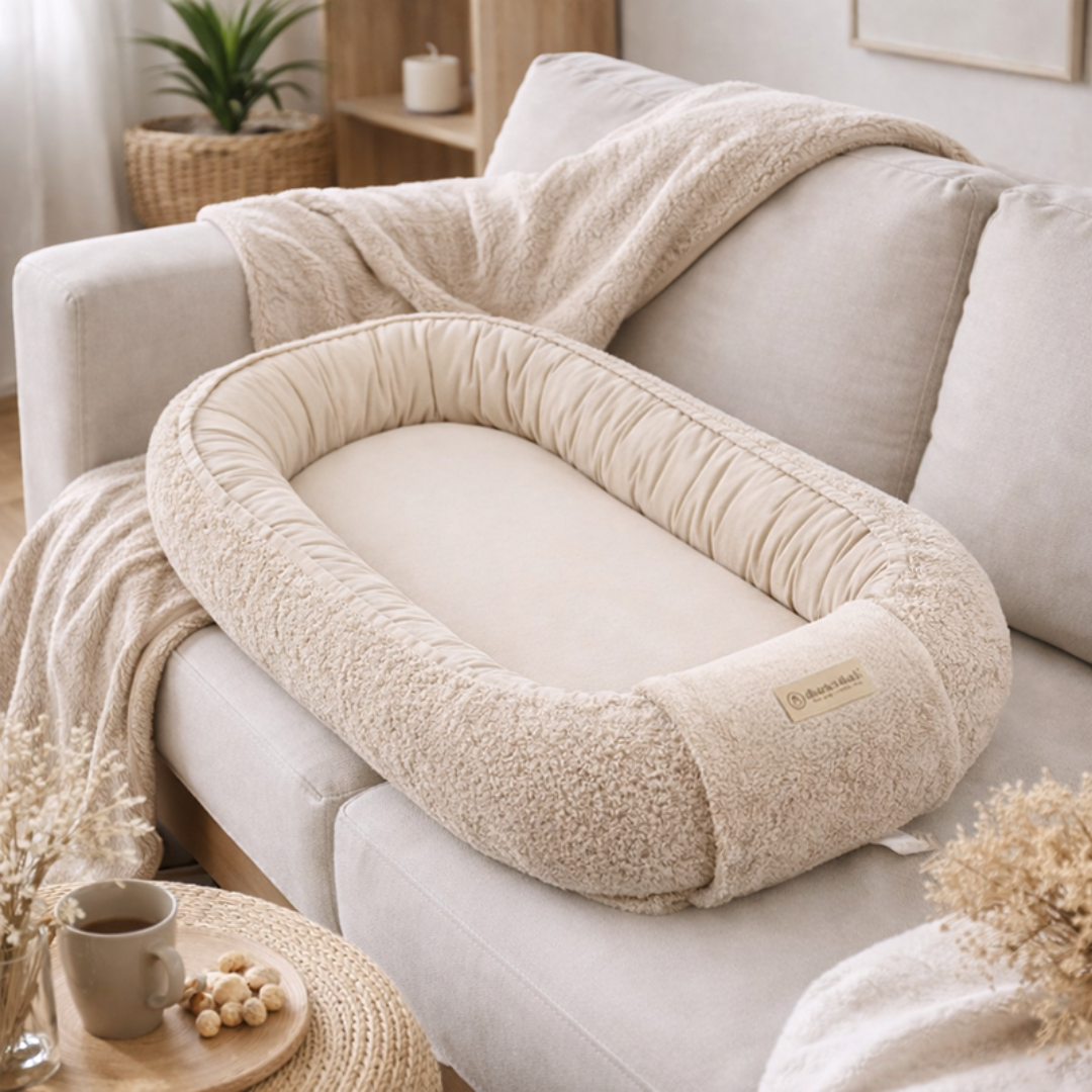 Das Babynestchen aus Teddymaterial von District4Kids schenkt deinem Baby von Geburt an Wärme, Sicherheit und Geborgenheit. Der kuschelige Teddy-Stoff schafft einen gemütlichen Kokon, der Babys ein vertrautes Gefühl vermittelt und so für ruhigen Schlaf sorgt – perfekt in den ersten 12 Lebensmonaten.