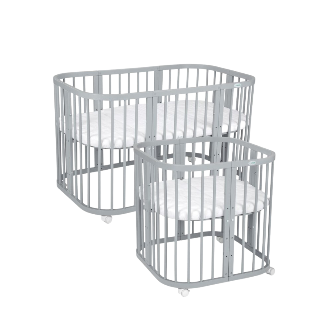 Ob als Babybett, Beistellbett, Laufstall, Kinderbett, Sofa oder Spieltisch – dieses clevere Möbelstück wächst mit und ersetzt gleich mehrere Anschaffungen.