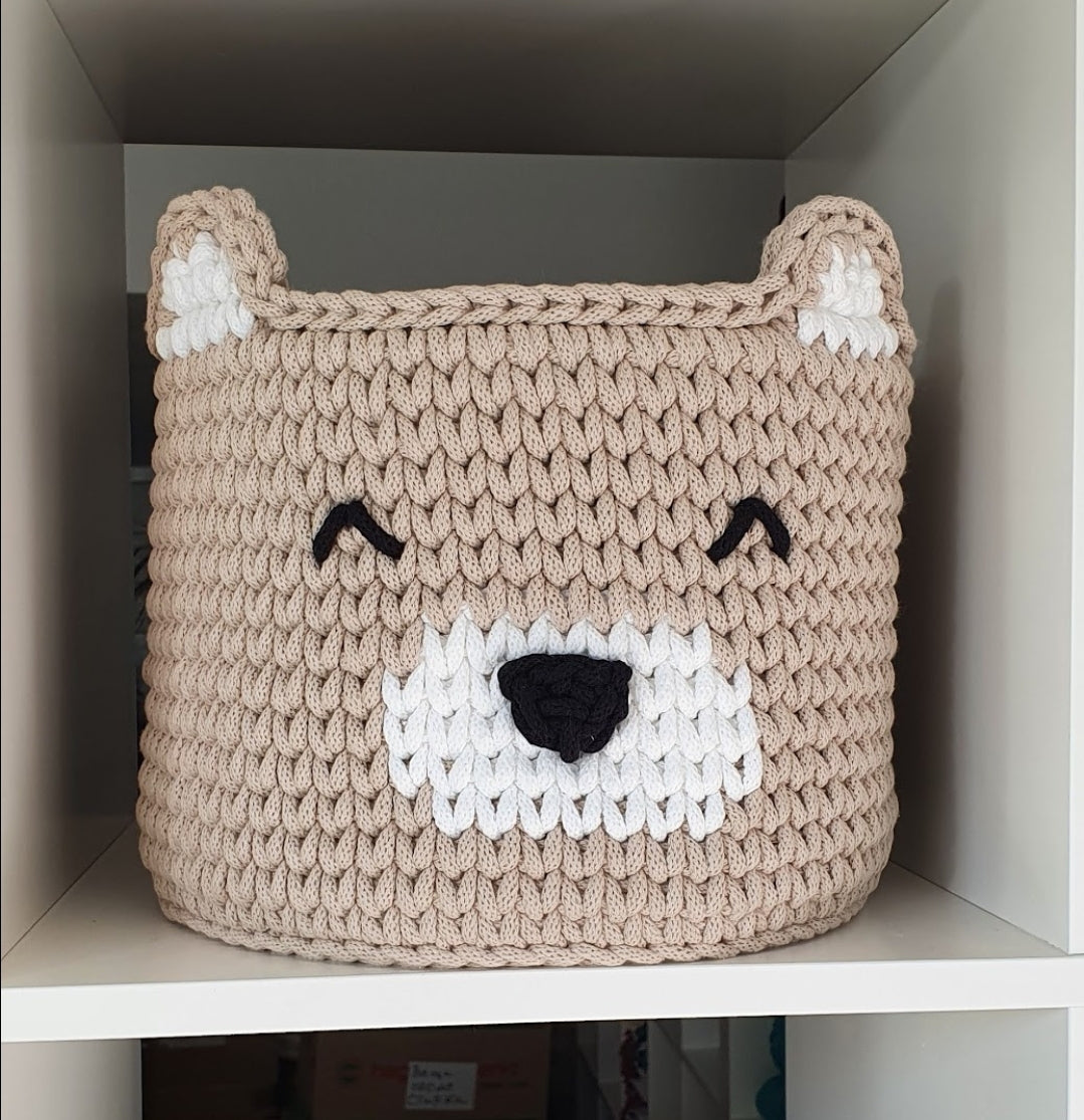 Scopri il nostro strumento di conservazione dei giocattoli "Bear"! Questa bellissima scatola dei giocattoli all'uncinetto realizzata in cotone eco-Tex riciclato è super pratica e adatta alle lavatrici. Con il simpatico modello di orso, diventa un colpo d'occhio in ogni stanza.