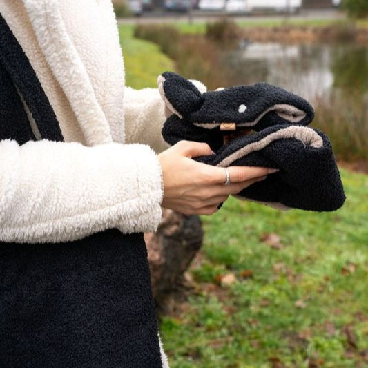 Das weiche Teddy-Außenmaterial und das kuschelige Polar Fleece Innenfutter halten deine Hände auch an den kältesten Tagen warm. Mit den praktischen Druckknöpfen lassen sich die Handmuffs schnell und sicher an Kinderwagen-, Autoschalen- oder Babyschalengriffen befestigen – für gemütliche Winterspaziergänge mit gutem Gewissen.