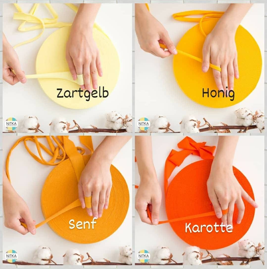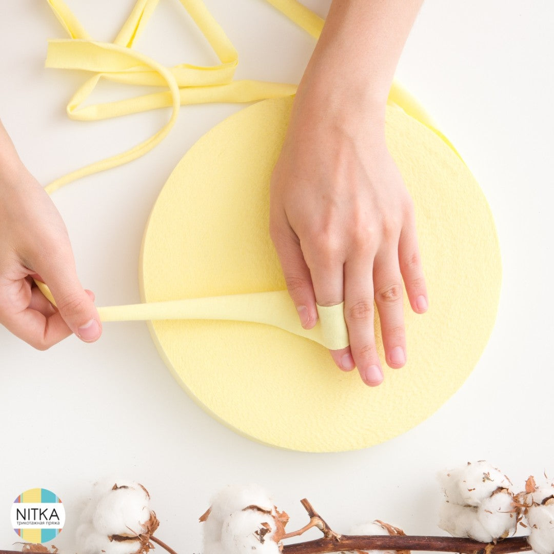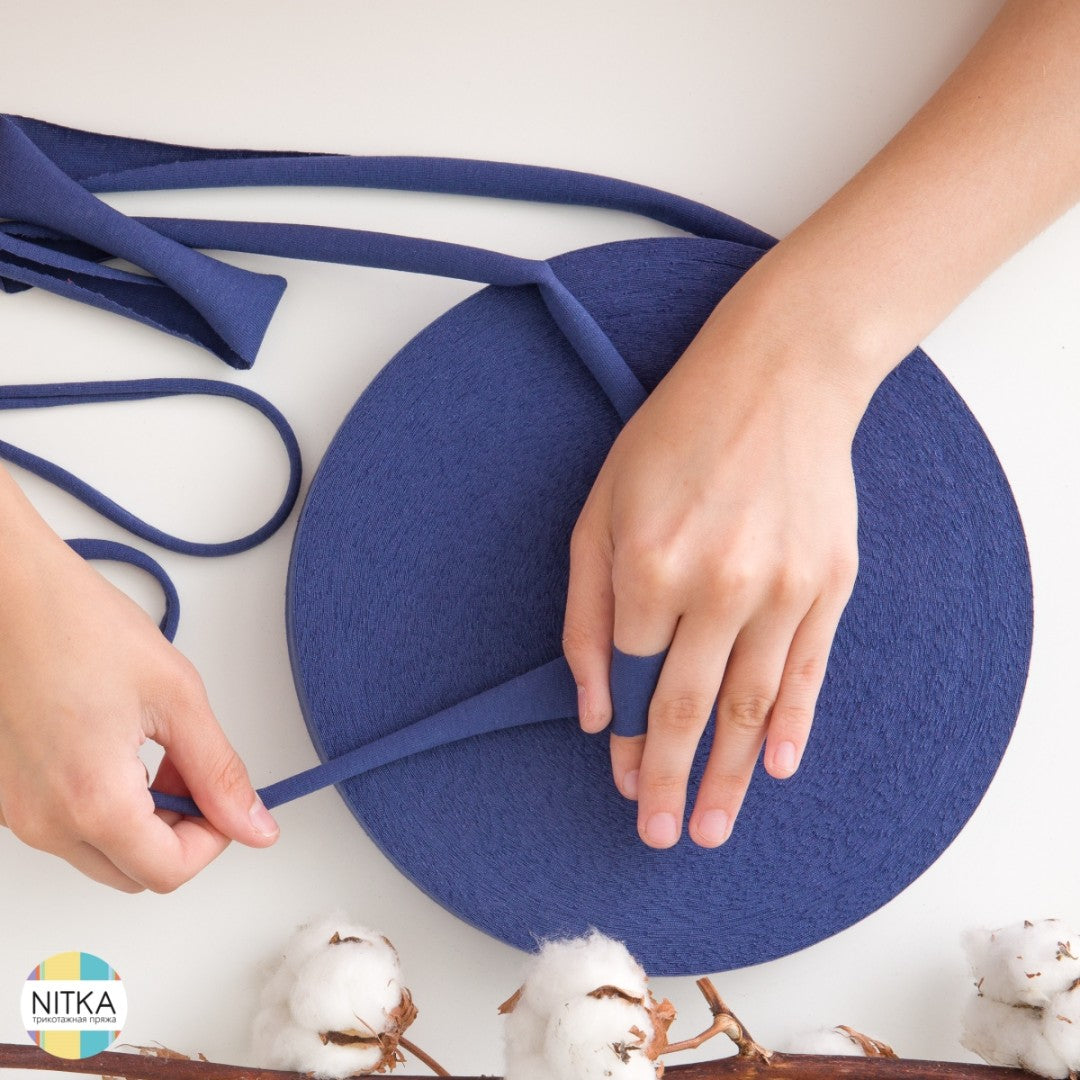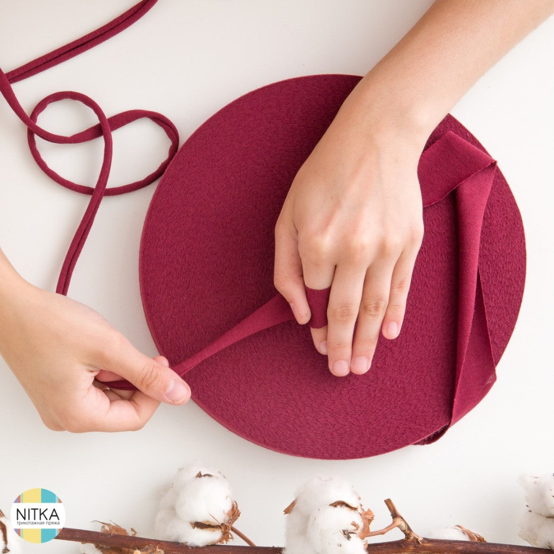 Die Handhabung ist ganz einfach: 100 Meter Garn werden zum selber ziehen auf einer flachen Rolle geliefert. Im Detail handelt es sich dabei um Stoffstreifen, die sich durch Ziehen nach innen einwickeln. Dadurch entsteht ein schönes, robustes Textilgarn, das sich bestens fürs Stricken, Häkeln oder andere Handarbeiten eignet.