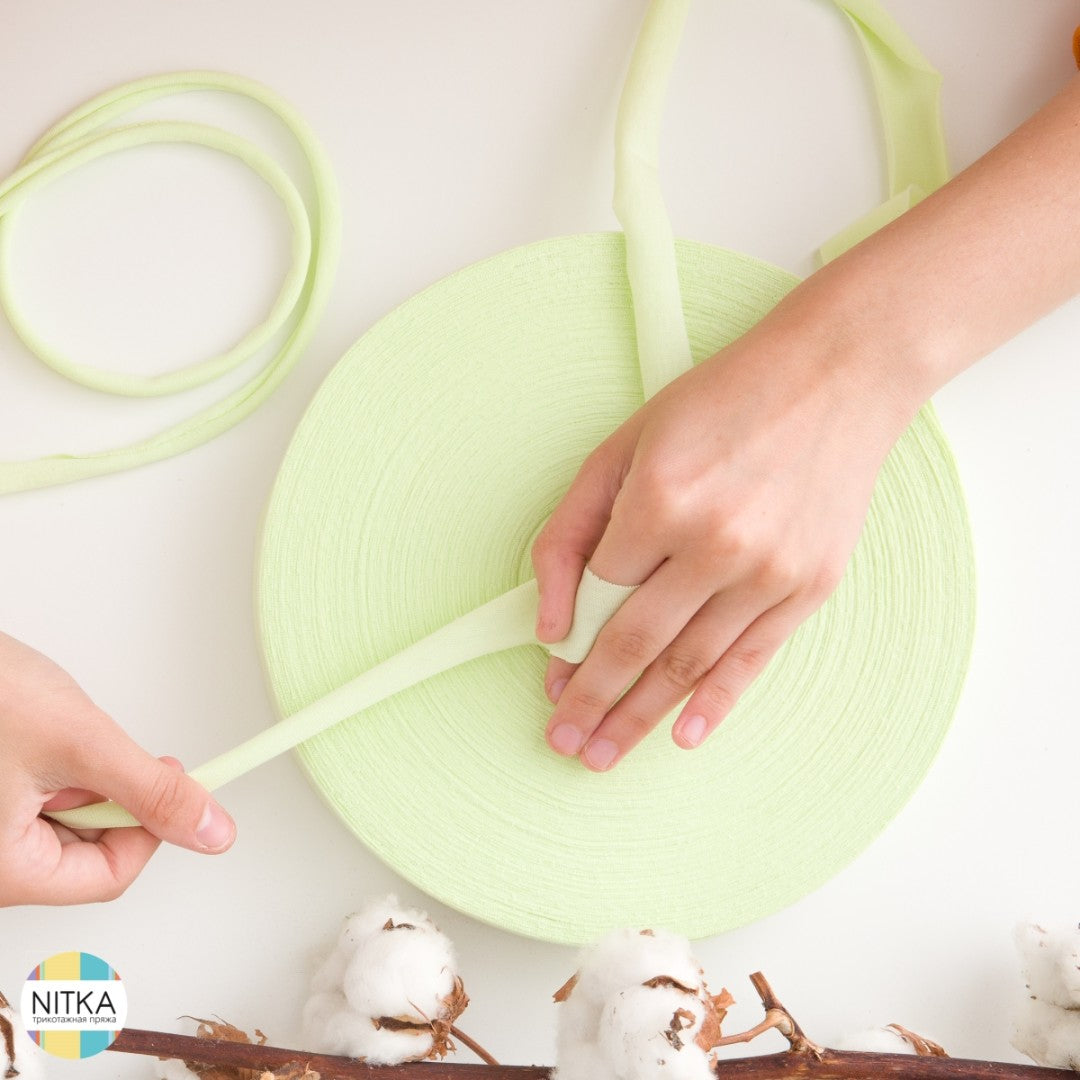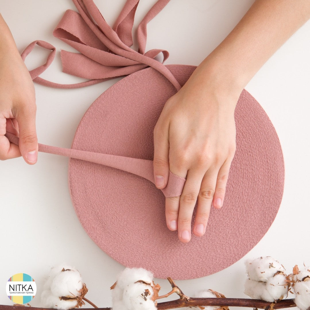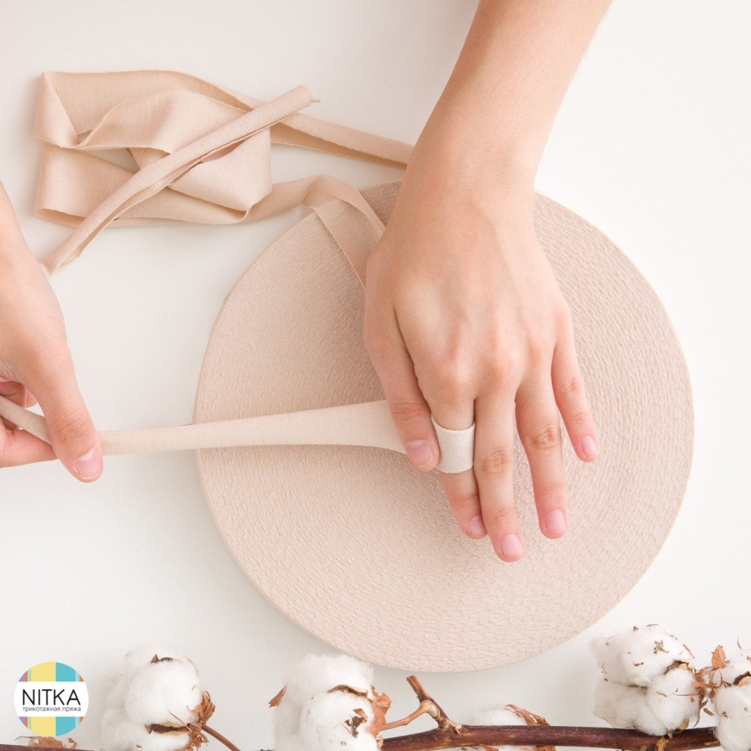Die Handhabung ist ganz einfach: 100 Meter Garn werden zum selber ziehen auf einer flachen Rolle geliefert. Im Detail handelt es sich dabei um Stoffstreifen, die sich durch Ziehen nach innen einwickeln. Dadurch entsteht ein schönes, robustes Textilgarn, das sich bestens fürs Stricken, Häkeln oder andere Handarbeiten eignet.