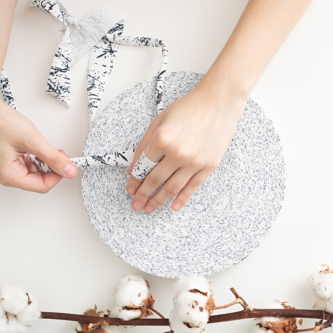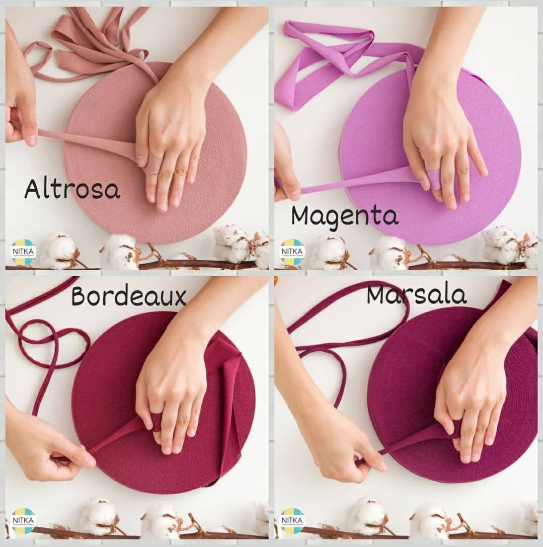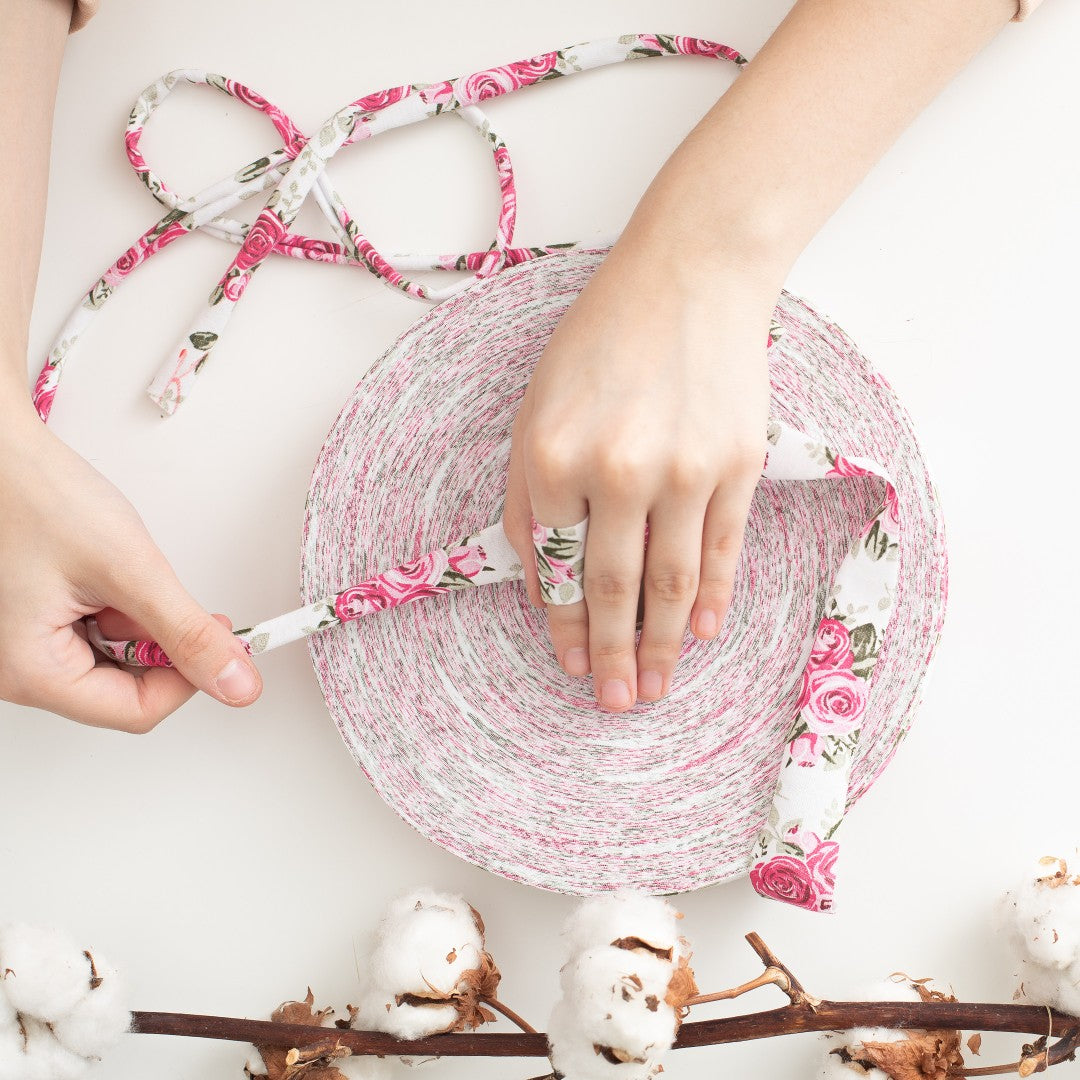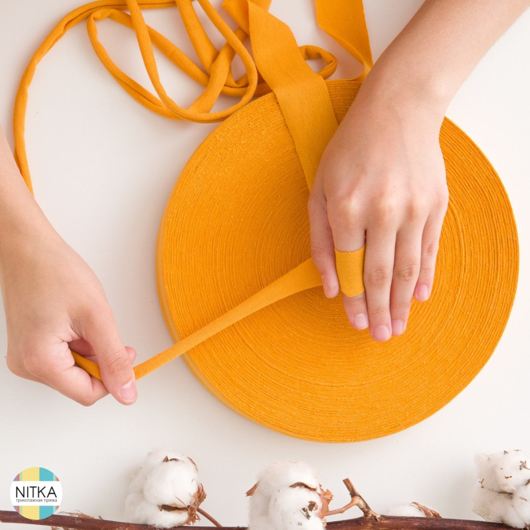Die Handhabung ist ganz einfach: 100 Meter Garn werden zum selber ziehen auf einer flachen Rolle geliefert. Im Detail handelt es sich dabei um Stoffstreifen, die sich durch Ziehen nach innen einwickeln. Dadurch entsteht ein schönes, robustes Textilgarn, das sich bestens fürs Stricken, Häkeln oder andere Handarbeiten eignet.