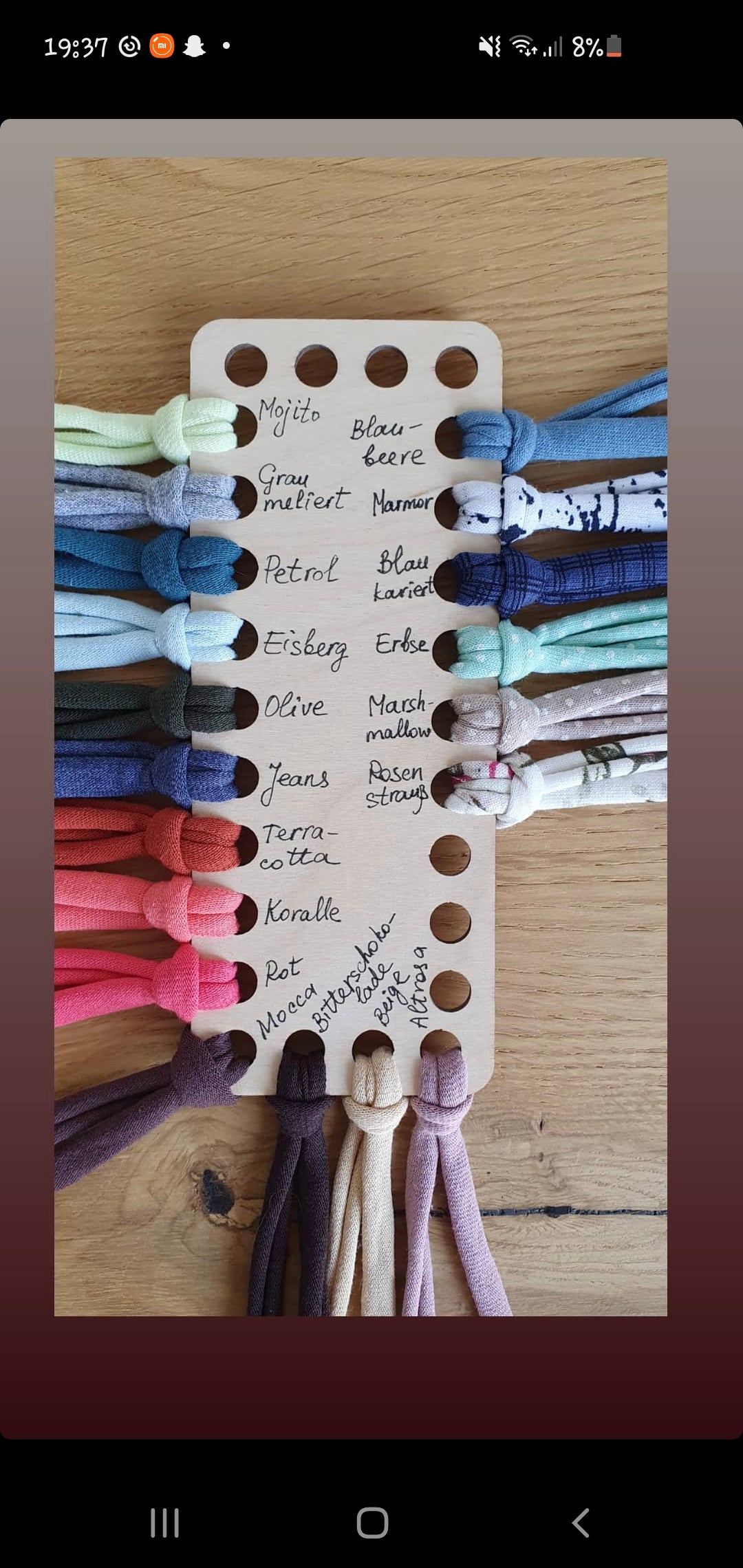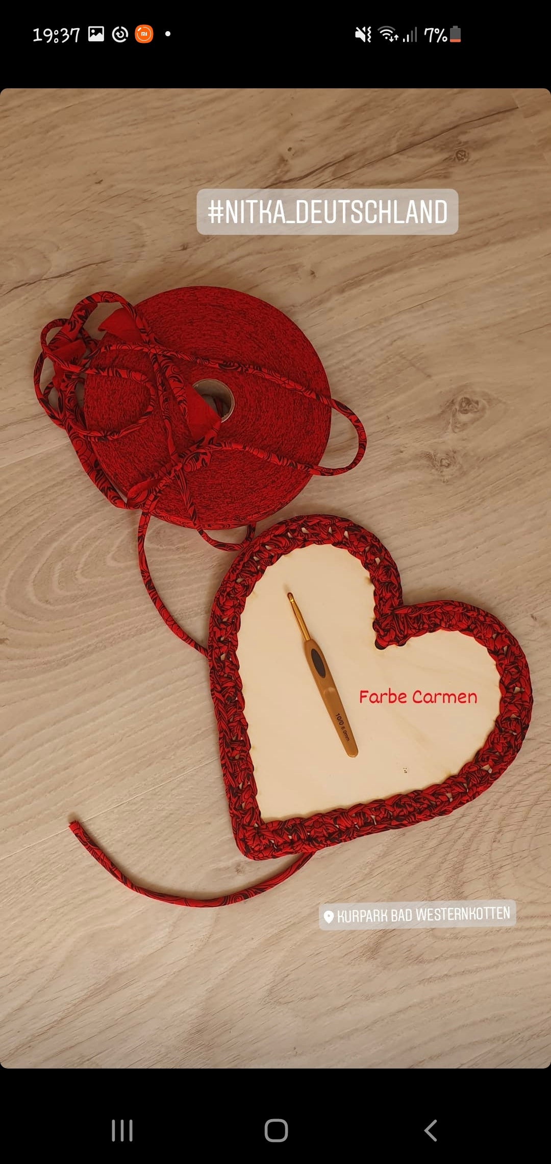 Dicke des fertigen eingerollten Garns: etwa 7 – 8 mm