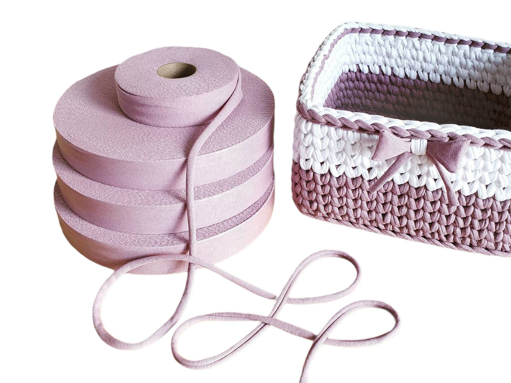 Es gibt zwei unterschiedliche Seiten des Stoffes mit verschiedenen Eigenschaften. Die rechte Seite des Stoffes ist in unserer Listung nicht extra gekennzeichnet. Wickelt man das Material mit dieser Seite nach außen, bleibt der Stoff auch bei der Verarbeitung schön fest und ist somit wunderbar geeignet für Körbe. Die Rollen, mit der linken Seite nach außen sind in unserem Shop mit dem Vermerk „links“ ausgestattet. Zeigt die linke Seite nach außen, dann wird das Garn eher elastisch und weich, was für Taschen, Rücksäcke oder Teppiche eine tolle Option ist.
